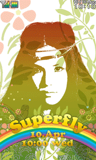 こちらもSuperfly初となる商品だ。ケータイの待受画面、トップメニュー、電話発着信画面およびメール送受信画面/音が、色とりどりのSuperflyカラーで可愛いデザインになっている。