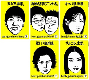 「飲み友、募集!」和田アキ子、「祝!17歳差婚。」市原隼人、「再改名!求むコンビ名。」さまぁ~ず、「キャバ嬢、転職。」小西真奈美、「サルコジ、求愛。」香椎由宇
