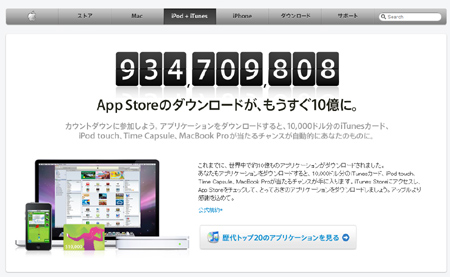 iPhone&iPod touchアプリ、まもなく10億ダウンロード達成へ