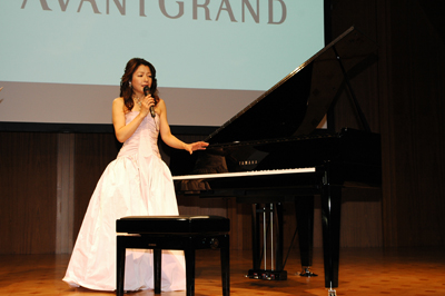 発表会ではピアニスト、仲道郁代のミニコンサートも行われ、ショパンの「幻想即興曲」、ベートベンのピアノソナタNo8「大ソナタ悲愴」第2楽章など、計4曲が披露された。音の印象は、まさに目の前にあるグランドピアノ。サンプリングされた音というのが信じられなかった。仲道本人も「まさにグランドピアノ。調律が狂わないのが不思議に感じる。フルグランドには及ばないものの、電子ピアノに馴染まなかった人にも薦められる。家庭や学校など、生活のすぐそこにあるグランドピアノとして使ってほしい」と評価。