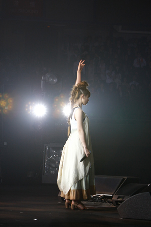 2009年で20回目を迎えたこのイベント、もちろんチケットは即日完売していたものだ。満員の会場では、19時の開演と共に、絢香とアルピニスト野口健が千葉県浦安市明海小学校の6年生たちと行なった記念植樹の模様が映像で流れ、地球環境の保護と保全を呼びかける様子にオーディエンスは釘付けとなった。