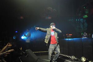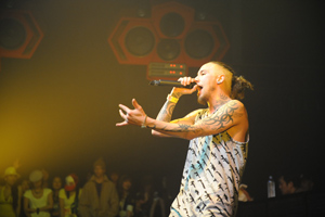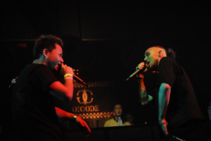 GICODEファンが一気に駆けつけ、普段と比べて女子の比率が高い観客がステージを見守る中、GICODEの2人とMr.Q(ラッパ我リヤ)が登場。1曲目からハイパーなパフォーマンスに、フロアを埋め尽くした人たちは圧倒されつつも、すぐに2人のテンションに追いつき、「JUMP AROUND」では会場が一体となってジャンプ。