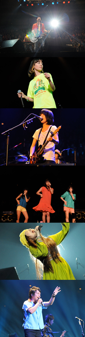 オープニングアクトに登場し、キャッチーなロックビートで一気に会場をヒートアップさせたROCK‘A’TRENCH。木村カエラは持ち前のファンシー・ロックでオーディエンスの心をぐっとつかんだあと、チャットモンチーも重厚なサウンドとキュートなボーカルの絶妙なバランス感覚で存在感を見せつけた。登場するだけで大きな歓声を浴び、広島弁バリバリの天然MCで会場を沸かせつつ、テクノポップの魅力をアピールしたPerfume。広い会場の隅々までボーカルパワーをぶつけ、圧巻の歌声を聞かせたSuperfly。ラストに登場したポルノグラフィティは、メロディアスなポップロックを渾身のパフォーマンスで披露。会場が一体となってタオルを振り回したり、ダンスを踊ったりと、心地いい汗を流してライヴは終了した。