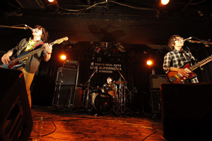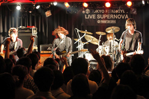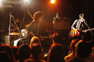そして、この日の締めくくりは2008年に行なわれたライブハウスツアーでSOLD OUT続出となった実力派のDirty Old Men。4ピースならではの厚みのあるサウンドにキャッチーでどこかせつないメロディーがオーディエンスの心をつかみ、会場も一体となっていた。「SUPERNOVAの名前のとおり、爆発寸前です」とアンコールの「elif」まで、きらきらしたパフォーマンスが炸裂する熱いライブとなった。