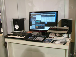 エムアイセブンブース。オーディオインターフェイス、モニタースピーカーはヤマハのものだった