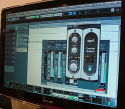 Cubase上でスネアトラックにインサートされているのがSPL社のハードウェアエフェクターをモデリングしたSPL Transient Designer