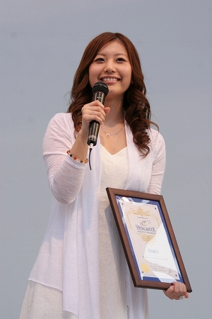 映画主題歌という異例の抜擢を受けたデビュー曲「願い星~I wish upon a star~」を広場に響かせたのち、スペシャルゲストとして、映画『真夏のオリオン』に出演しているケミストリーの堂珍嘉邦が、いつかへのスペシャルなプレゼントを手にして登壇。なんと、映画『真夏のオリオン』にちなみ、映画の制作スタッフが、オリオン座の中(オリオンの「三つ星」のそば)に「ITSUKA」という星を誕生させたのだ。