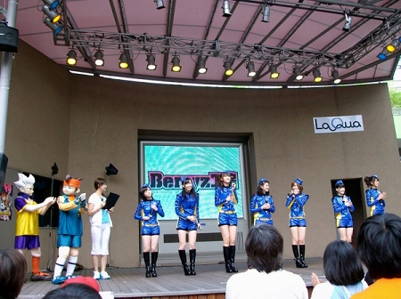T-Pistonz+KMCの「マジで感謝!」で盛り上がりを見せたところで、次にアニメのエンディングテーマ「青春バスガイド」を歌う Berryz工房が大きな声援を受けてステージに。シングル曲「ジンギスカン」、「ライバル」を立て続けに披露して会場の熱気をさらに高める。その後のトークコーナーでは、各メンバーが『イナズマイレブン』の好きなキャラクターをファンに紹介し、会場を沸かせた。