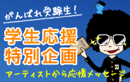 梅雨があければすぐに夏。夏休みを制するものは、受験を制す…ということで始まった<がんばれ受験生! 学生応援特別企画 presented by BARKS>。BARKSに訪れる多くの学生さんに向け、ねぎらいと励まし、そしてエールを贈るこの企画、沢山のアーティストが賛同し、コメントを寄せてくれました。参加アーティストも豪華絢爛、詳細はページを見ていただくとして、夏休みまで順次更新、BARKSお馴染みのあの方々や、テレビで活躍するあの方まで、夏休みまで続々とアーティストが追加されていきます。ちなみに何かと登場しているのは、BARKSコミュニティーのヌシになりそうでなれなさそうな、ちょいピンずれキャラのアフロ先輩。コミュニティでは、オッス!オラアフロ!とビミョーな空気を出しています。
