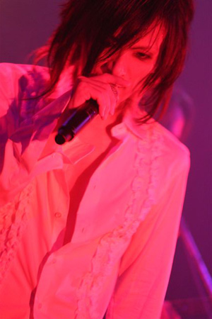 <シモーヌと逆鱗>と銘打たれた今回のステージで彼の脇を固めているのは、HIRO(g:Libraian、ex-La’cryma Christi)、SHINOBU(g:ex-Guy’s Family)、HITOKI(b:ROBO+S、Dummy’s Corporation、ex-黒夢)、そしてSAKURA(ds:S.O.A.P.、ex-L’arc~en~Ciel、ex-ZIGZO)という顔ぶれ。2006年末の公演から引き続いての参加はHIROのみということになるが、HITOKIは過去にこのグループの一員としてイベント出演を果たしているし、SAKURAには遠い昔、DEAD ENDのローディを務めていたという事実もある。SHINOBUとは文字通りの初合流ということになるが、Creature Creatureは、いわゆる“即製バンド”的な軽さとは、当然ながら無縁だ。実際のところ、今回の公演のために6月上旬に帰国していたMORRIEを囲みながら、短期間のうちにかなり高密度なリハーサルが行なわれてきたということだが、構築美と即興性、安定感とスリルを同時に堪能させてくれる演奏ぶりには何度も鳥肌が立ったし、それは言うまでもなく、官能美と攻撃性を兼ね備えたMORRIE自身のヴォーカル・パフォーマンスについても同じだった。