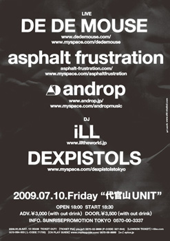 出演:DE DE MOUSE、DEXPISTOLS、iLL、asphalt frustration、androp
