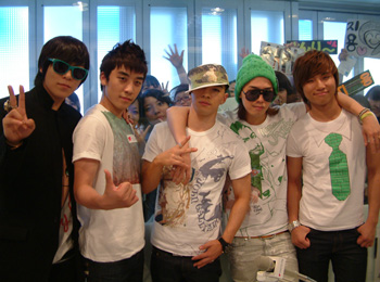 ハングルでメッセージを書いたうちわ、タオル、ボードなどを持ち、次から次へと順番に列を成して観覧していくファンに、G-DRAGONは頻繁に手を振って応え、D-LITEがニコニコうなずく中、荘口が「V.Iさん、こういうときにファンのみなさんに向かって“僕とつきあって”っていうと、“キャー!”ってなりますよ」とアドバイスすると、すかさずV.Iが「僕とつきあって」と言ってファンを喜ばせ、サービス満点のBIGBANGにファンも終始興奮気味だった。
