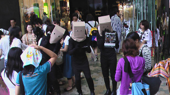 かねてからboogiemanオフィシャルサイトやグッズに出没していた謎の怪人“ブギーマン君”が、この度、boogiemanの宣伝部長に任命され、都内に出没しているというのだ。街中では、道行く人々に「ブギーマン君名刺」を配り、CDショップでは1時間店員を務めるなど、boogiemanを大々的に宣伝するべく大活躍。