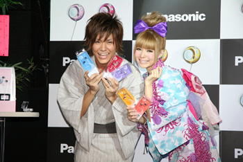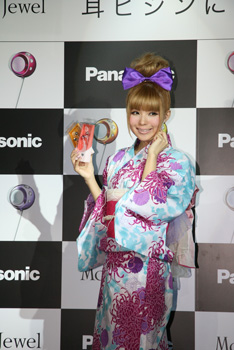 さて、7月7日の七夕の夜、このイヤホンのデビューイベントが都内で開催され、マスコットキャラクターとして、ファッションモデル、タレントとして大活躍の益若つばさが登場。キラキラ輝く彼女が、同じくキラキラ輝くMoon Jewelを装備して、耳元のオシャレを存分に見せてくれた。会場には一般のお客さんも詰めかけており(ほとんどが若い女子)、彼女たちの黄色い歓声を受けながら、Moon Jewelの魅力を語った。この日の益若つばさは、七夕ということもあって浴衣ファッション。途中から旦那さんであるファッションモデル、デザイナーの梅田直樹も登場。夫婦揃って、Moon Jewelをアピールした。