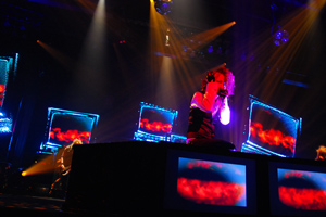 会場である戸田市文化会館前には、真夏にも関わらず黒い服を着込んだファンで溢れ、異様な熱気に包まれた。1曲目はアルバム『DIM』のリード曲である「THE INVISIBLE WALL」でスタート。久々のツアーということもあり、メンバーもファンも溜まっていた鬱憤を晴らすかのように暴れまくる。狂喜乱舞で盛り上がる中、オリコンウィークリーチャートで2位を記録した「LEECH」や極上のバラード「紅蓮」など、約3時間にわたり全22曲を演奏した。