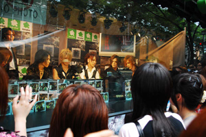 番組ではアルバムやライヴの話をはじめ、普段なかなか聞くことのできないプライベートな話も飛び出し、会場前に集まったファンを沸かせた。
