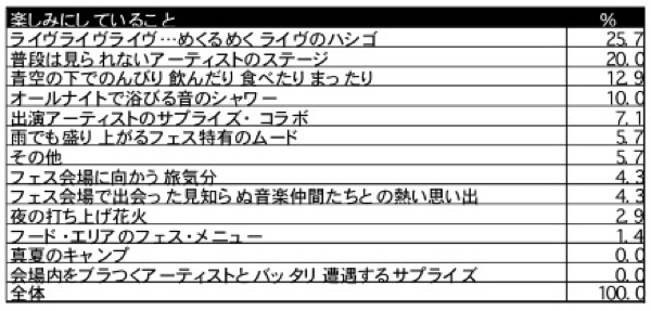 BARKSユーザーが選んだ「夏フェスであなたが楽しみにしているのは?」~データ~