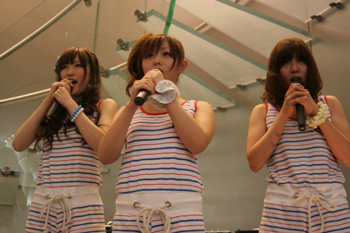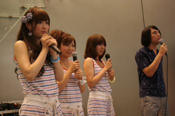 披露されたのは「LOVE IS ALL」「tomorrow」「LOVE IS ALL~summer breeze mix~」の3曲。元気に可愛く、ダンスもめいっぱい入ったパフォーマンスは彼女たちの魅力を存分に伝えてくれた。詰め掛けたファンもペンライトを振る人、手拍子をする人、曲と一緒に身体を揺する人などがいて、ステージとファンが一緒に楽しめる空間が出現。トークをはさみながらのステージに、短い時間だったが十分に満足できたのではないだろうか。