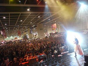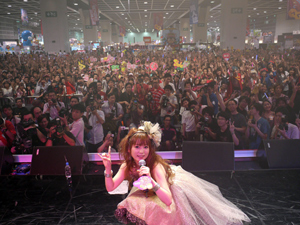 8月1日20時より香港コンベンションセンターで行なわれたライヴに、しょこたんのパフォーマンス、歌声を聴こうと集まった香港人は1万人。しょこたんが登場するや歓声で会場が揺れるほどだった。