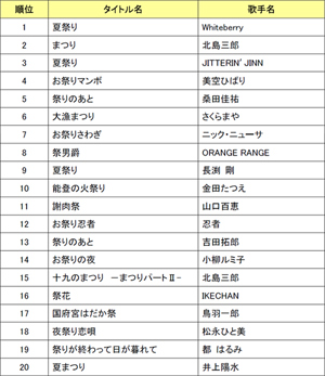 四季折々の「まつり」楽曲がランクインする中、特筆すべきは、「夏祭り」が1位(Whiteberry/2000年8月発売)、3位(JITTERIN’JINN/1990年8月発売)と上位を占有。時代を超えて、確かな支持が証明された「夏祭り」、もはやJ-POPシーンのスタンダード・スカ・ナンバーということでしょうか。