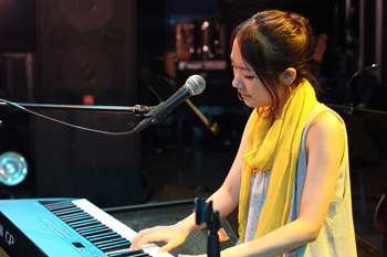 チケットソールドアウトとなったこの日は、関係者含め500人の観客が会場を埋め尽くした。ライヴはインディーズ時代のアルバムに収録の「For the moon」でスタート。ギター、ベース、ドラム、キーボード、バイオリン、チェロといったバンドメンバーをバックに、「プレゼント」「若葉」「Fragile」と、1stアルバムからの楽曲を次々と披露した。