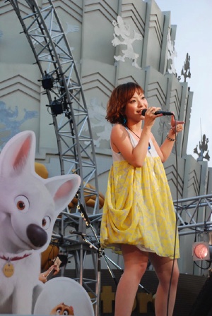 ディズニー映画『ボルト』の日本語版エンディングソング「同じ空を見上げてる」(7月29日リリース)を歌う甲斐名都が、8月1日に千葉県舞浜にあるイクスピアリで、映画舞台挨拶、ラジオ番組生出演、ミニライヴと立て続けに登場。新曲「同じ空を見上げてる」と映画『ボルト』をアピールした。