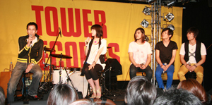 8月5日(水)、TOWER RECORDS渋谷店B1のSTAGE ONE会場に集まった多くのファンは、展示された貴重な原画やノブレス携帯を記念に写真撮影をするなどの盛り上がりを見せていた。十分なテンション上昇のファンを前に、イベントは、school food punishmentのミニライヴでスタート、エンディング・テーマである「futuristic imagination」など2曲を披露。その後、神山監督×school food punishment のトークが繰り広げられた。