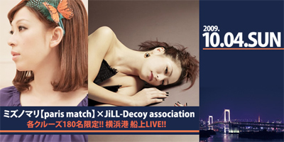2009年10月4日、東京湾・横浜港の極上の夜景が楽しめる音楽イベントシップcelebrity 2にて、<ミズノマリ×ジルデコ Cruise!!!@横浜港 船上LIVE>の開催が決定となった。