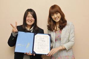 これは「レコチョク独占MEET&GREET企画!福田沙紀を卒業式に呼ぼう!」と題し、2月4日~2月17日に応募を受け付けていた企画で、2010年で音楽活動5周年を迎える記念とともに、卒業シーズンにぴったりな「Spr*ing for you」をリリースすることから立ち上がったもの。福田沙紀が直接卒業祝いをするのみならず、1名だけにオリジナル卒業証書をつくってお祝いをするというイベントで、見事当選した茂木さんは、大学で心理学を学びカウンセラーを目指すという夢を持つ卒業生だ。