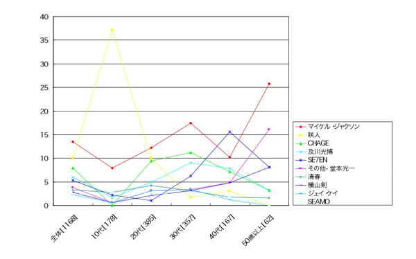 【男性編】「帽子が似合うアーティスト」 年代別得票率