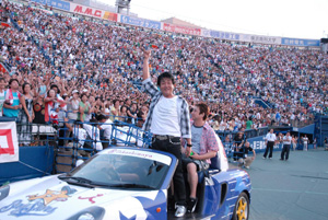 恒例となっているオープニング・パフォーマンスでは、TUBEメンバー4人が横浜スタジアムを本拠地とするベイスターズが本当に使用しているリリーフカー2台に分乗して登場。野球場ならではのサプライズに、てっきりステージに登場するものと思っていたファンは大喜び。ベンチ付近から現れ、観客席の間近を通ってステージに向かうメンバーたちに大興奮だ。そしてリリーフカーを降りたメンバーはステージに駆け上がると、1996年の大ヒット・シングル曲「Only You君と夏の日を」をパワフルに演奏。3万人の大歓声が巻き起こった。