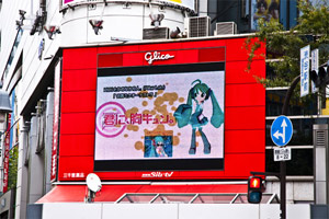 <初音ミクとテクノ・デザイン展>は初音ミク生誕2周年に加え、BECCAと初音ミクのコラボ・シングル「SHIBUYA」と、HMOとかの中の人。(PAw Lab.)によるYMOのカバー・アルバム『初音ミクオーケストラ』の発売を記念して開催されたもの。現在、渋谷駅周辺の交通広告や街頭ビジョン、センター街のBGMも初音ミクが席巻しており、渋谷は初音ミクだらけだ。