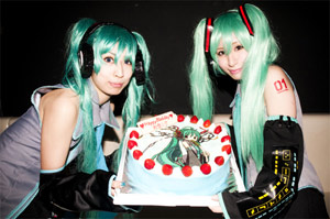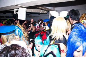 渋谷PARCO PART1での撮影会と、渋谷某所での記念撮影を終えたコスプレイヤーたちは、同じく渋谷にあるイベント会場、club axxcisへ移動し、ファッションとアニメーション、カッティングエッジな音楽をミックスしたイベントとしてメディアからも大きな注目を集めている<DENPA>に来場。スペシャル・ゲストとして同イベントに出演した動画サイト発の人気音楽クリエイターであり、「BECCA feat.初音ミク/SHIBUYA」のリミックスも手掛けた、ささくれPことsasakure.UKと共に初音ミクのバースデイ・イブを祝った。