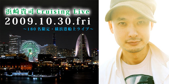 浜崎貴司が、船上にてライヴイベントを開催する。2009年10月30日、音楽イベントシップのcelebrity 2にて行なわれる<浜崎貴司Crusing Live!!!@横浜港 船上LIVE>なるイベントだ。
