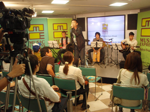 この日は、いつものターンテーブルのDJセットではなく、ギター、キーボード、パーカッションというバックバンドを引っ下げてのスタイルで登場したMASH。生楽器の温かいサウンドも加わり、彼が発する熱いメッセージが、東京駅構内を通行中のサラリーマンやOL、学生などの足を止めさせる。MASHのステージには、のべ500人以上の人だかりが集まる事態になった。