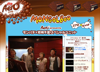モンパちぃの楽曲「Breakfast@曙 エアロバージョン」は、オリジナル着うた(R)として、ネスレ エアロ購入者にもれなくプレゼントされる。この曲は、MONGOL800の最新アルバム『eight hundreds』に収録されている「Breakfast@曙」を、ネスレ エアロのイメージに合わせて新たに書き替えたオリジナル楽曲だが、今回のコンセプト「ふわふわと、肩肘を張らないで行こうよ」という想いを込め、新たに作詞され、若槻千夏も熱唱するという、激レアな作品となった。
