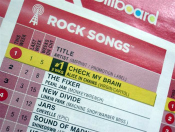 | ▲アメリカではこのアルバムからのリード・トラック、「チェック・マイ・ブレイン」がラジオで絶好調。『ビルボード』誌の“ROCK SONGS”チャートでも、パール・ジャムやリンキン・パークをおさえて首位を独走中だ。 |