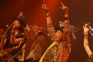 そして、トリをつとめるのはPistol Valve。管楽器を手に持ちながらヴォーカル/ラップでメッセージを、そこにヴァイオリン、バックを支えるのはDJという、変則的な編成の女の子10人組だ。全員が豹柄の衣装で登場し、ステージは一気に華やかに。何よりも大人数で表現するホーンセクションに圧倒される。