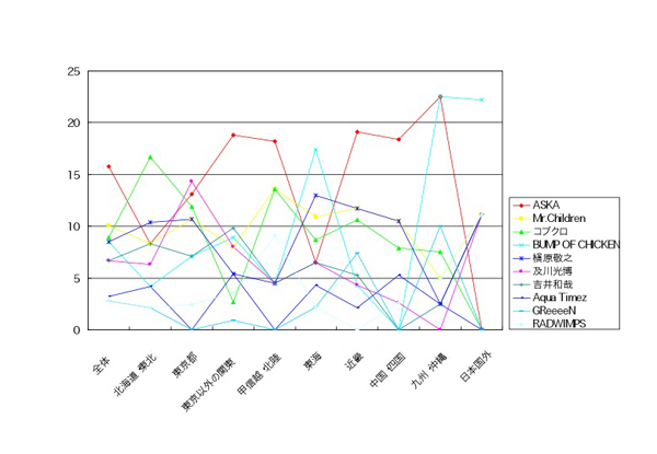 【歌詞が沁みるアーティスト・男性部門(地域別)】