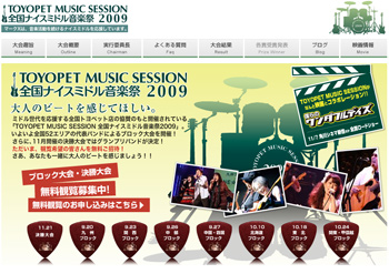 <トヨペット全国ナイスミドル音楽祭>は、2009年で3回目を迎えるミドル世代による日本最大級のアマチュアバンドコンテストだ。セッションを通して大人同士の豊かな関係作りを広げていきたいという思いで始まったコンテストだが、2009年は全国47都道府県を7ブロック52エリアに分けて募集が行なわれ、792組ものシニアバンドが結集することになった。