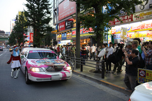 完成した痛リムジンは、イベント終了と同時に会場を抜け出し、一目散に秋葉原に直行。秋葉原を行き交う電気なお友達にその雄姿をお披露目した。もちろん、出くわした人々は立派なリムジンのあまりの痛さ具合に唖然。突然のサプライズにあんぐりとなった。