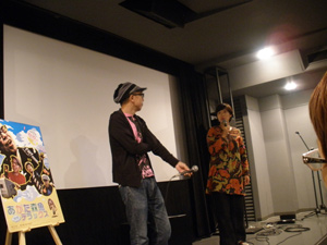 完成した映画を見て「正直、もっとかっこいいところがあったのになと思いました(笑)」と話すあがた森魚に、「プロモーションビデオみたいなものにはしたくなかった。あがたさんの音楽を知らない人にも通じるものにしたかったし、すでにあるあがたさんの固定イメージを打ち壊すべく、この映画を作りました」という竹藤監督の言葉に、あがた森魚も強く頷き納得の表情。