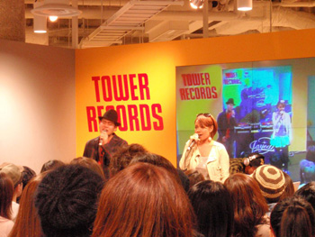 そんな快進撃を続けるEMI MARIAと、au by KDDIのCMソングとなっているシングル「Everybody」がヒット中のJAY’EDが、10月17日にお互いの地元である関西のタワーレコード梅田NU茶屋町店にて、本邦初披露となるコラボレーション・ライヴを行なった。この貴重なコラボレーション・ライヴをひとめ観ようと、会場には事前に配布された整理券を手にした300名以上のファンが集まり、会場を囲った塀の外まで人で溢れかえった。