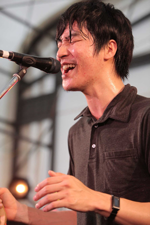 次に1stSTAGEに登場したのは、かりゆし58。「今日もまた音楽が好きになった」というMCに会場からは大きな拍手が。そんな言葉を体現するような演奏が、泣きたくなるほどじんわりと心に染み入ってくる。MCを挟んで披露された「アンマー」、泣ける歌としても有名なこの曲がしっとりと歌い上げられ、会場は熱いというよりはあたたかいと表現したほうがふさわしい空気に満ちました。ラストは「さよなら」。その力強い歌声が会場に広がり、お客さんは、ただ黙ってじっとその歌に聴き入っていました。
