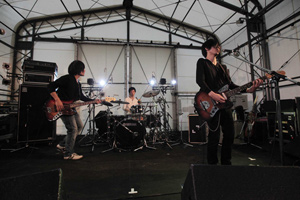 2mdステージのトリは、タワレコと毎月コラボしているフリーペーパー「毛タワのマレコZ」でお馴染みの毛皮のマリーズ。イントロがはじまった瞬間、お客さんがドドッーと走りこんできてアッという間に満員御礼。1曲目の「恋をこえろ」から志磨は超ハイテンション。もちろんお客さんも手を突き上げたままたて揺れ全快。MCで志磨は「俺達をトリにするとイベントがうまくいく。といつも言っててよくトリになります。今回もスタッフに俺達をトリにするとうまくいく。と話したら、予想外の場所でトリだった…」と会場中笑いの渦にした後、バラード「MAYBE」がはじまり、ルール違反(?)のアンコール1曲追加の全8曲を歌いきり、拍手喝采のうちに2ndステージを終了させた。
