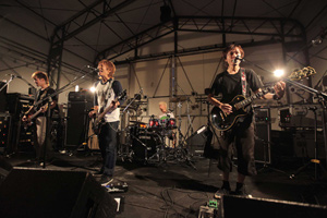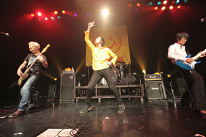 そして、いよいよ、the pillowsの登場。SEが流れると、早くも会場が揺れ始めます。1曲目は「ノンフィクション」。会場のテンションの高さがハンパない。「YOUR ORDER」のあとのMCでは、山中さわおが「増子さん、若いよね。さっきの姿なんて、少年みたいだったじゃん」と、本気で驚いている様子も。「I think I can」「Lemon Drops」「メロディー」と続き、MCを挟んで披露されたのは、2009年に結成25周年を向かえた怒髪天のカバー。彼らが選んだのは名曲「小さな約束」だった。楽しそうに演奏する彼らを見ているだけで、心から怒髪天をリスペクトしていることがわかる。そして、最新シングル「雨上がりに見た幻」「サードアイ」と続き、ラストは「POISON ROCK’N’ROLL」。会場中が手を上げ、その顔はみんな笑顔。最高のロックンロールショウを見せてくれたthe pillowsに、惜しみない賞賛の拍手が送られた。