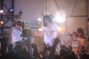 1st STAGE4組目は、インディーズ時代にタワレコのレーベル“bounce records”からリリースしたこともあるTRICERATOPS。「FUTURE FOLDER」で始まり、イントロだけで会場中が沸いた「Groove Walk」で、会場はダンスフロアさながらの盛り上がりに。「タワーレコード30周年おめでとう!ところで、タワレコの一号店ってどこだっけ?銀座?(注:札幌)」なんて、ちょっぴり間違ってしまったMCのあと「今日はオレたちも一所懸命やるからさ、みんなもいっぱい踊ってよ!」とボーカル/ギターの和田唱が笑顔を見せると会場からは大歓声が。「I GO WILD」「MILK&SUGAR」、MCを挟んで、新曲「爆音Time」が初披露され、「Going To The Moon」であがりきったテンションをコール&レスポンスでさらに煽って、ラストは「Raspberry」。踊らにゃそんそん…なトライセラのライブ。会場は、彼らが去ったあとも、しばらく熱気に包まれていた。