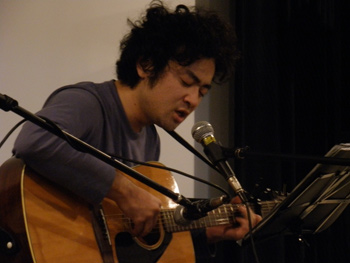 この日のライブでは、このイベントのために用意してきたあがた森魚の曲「大寒町」と、自身のデビューアルバムに収録されている代表曲「青い部屋」を披露。「青い部屋」はあがた森魚やはっぴいえんどをよく聴いていたという21歳の頃に作った曲なのだそうだ。