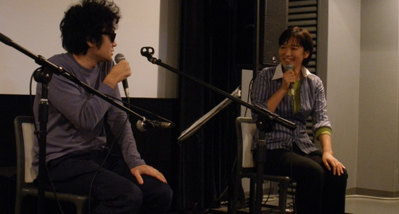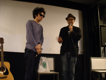 会場では竹藤佳世監督も飛び入り参加し、黒い大きなサングラスがトレードマークの前野健太に監督が「ボブ・ディラン好きですか?」と唐突な質問。「好きです。僕はマネしてます。影響受けているというか…マネですんで」と、若干たじろぐ前野健太に観客も爆笑。
