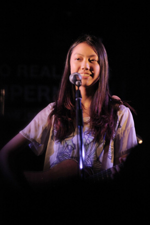 最初に登場したのは、「TOKYO REAL-EYES」のコーナー「SPEAK OUT!」にレギュラー出演している星羅だ。12月9日に発売されるTHE YELLOW MONKEYトリビュートアルバム『THIS IS FOR YOU』にも参加する彼女は、アコースティック・ギター1本の弾き語りで1曲目を歌い出すと、そのナチュラルな歌声に会場は一瞬にして柔らかい雰囲気に包まれた。続いてバンドメンバーを加えて、デビュー曲「数字と恋」など6曲を披露。はかなげなのに芯のあるライブ・パフォーマンスでオーディエンスを魅了した。